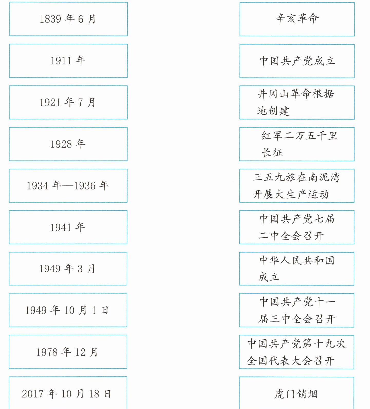 在本单元的学习中,我们回顾了中华民族的百年奋斗史,请将以下时间和重大历史事件连一连。