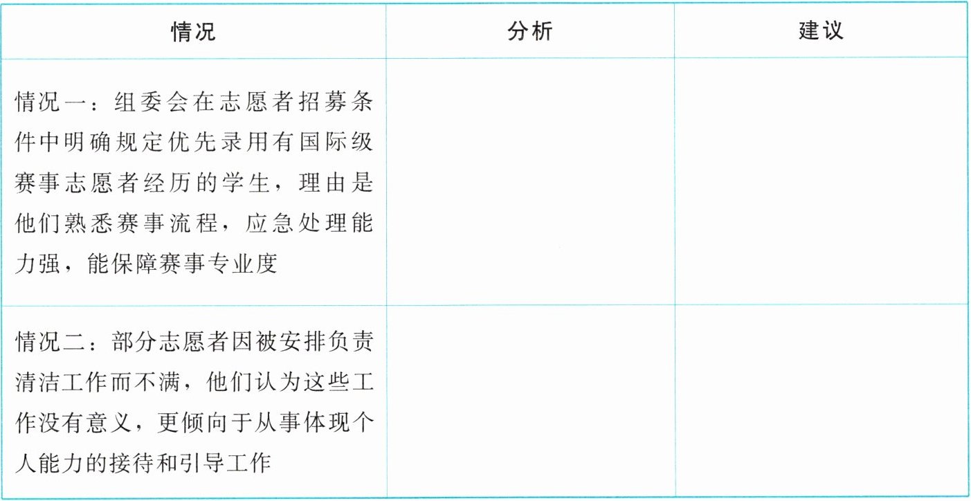 建议:在招募条件中,除了优先考虑有国际级赛事志愿者经历的学生外,也应给其他有潜力、有热情的学生提供机会,比如设置一定的培训和考核机制,让更多学生能凭借自身努力参与到赛事志愿服务中,体现平等原则。
