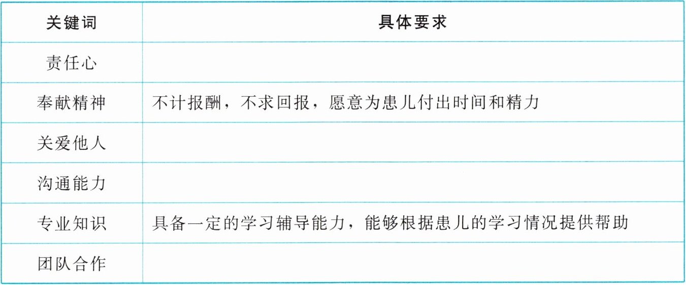 |责任心|认真对待每一次志愿服务,对患儿的学习和成长负责|