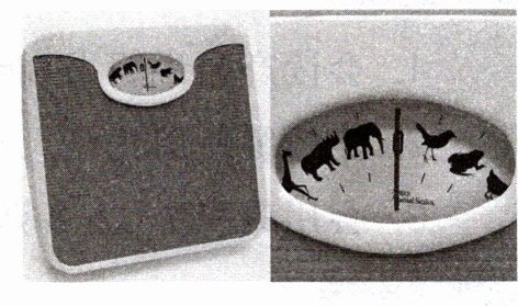 14. 如图所示为国外生产的一款“体重计”,有趣的是这款“体重计”的刻度盘上标示的不是数字而是一些动物。当一名中学生用这款“体重计”测体重时,“体重计”的指针会指向(