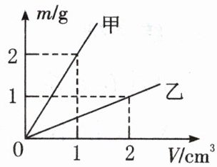 9. 图像法是有效表述物理量的重要手段之一,如图所示,分析 $m - V$ 图像可以得出甲、乙两种物质的密度大小关系是