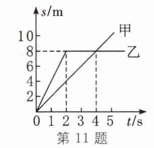 11. 甲、乙两辆车同时从同一地点向东做直线运动,其s-t图像如图所示,请根据该图像提取合理信息。示例:甲车做匀速直线运动。