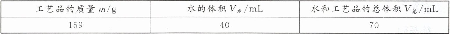 | 工艺品的质量 $ m / g $ | 水的体积 $ V_{水} / mL $ | 水和工艺品的总体积 $ V_{总} / mL $ |