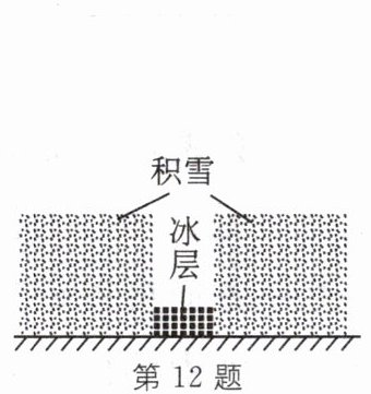 12. 平整地面上有一层厚度均匀的积雪,小明用力向下踩,形成了一个下凹的脚印,如图所示。脚印下的雪由于受外力挤压可近似看成冰层,冰的密度已知,只要测量下列哪组物理量,就可以估算出积雪的密度(