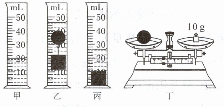 d. 从水中取出小木球,用天平测量质量,天平平衡时如图丁所示,记录小木球的质量为m;