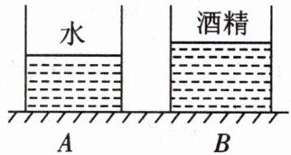 26. (8分)如图所示,两个完全相同的圆柱形容器(厚度不计)A和B放在水平桌面上,容器的底面积为2×10⁻^2m^2,容器内水的深度为0.2m,且两容器中水和酒精的质量相等。(已知:$\rho_{酒精}= 0.8×10^3kg/m^3$,$\rho_{铝}= 2.7×10^3kg/m^3$)