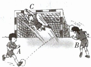 在A的作用下,球由静止变为运动;B改变了球的运动方向;在守门员C的作用下,球由运动变为静止。