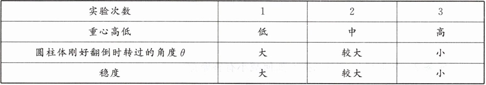 (1)图乙中圆柱体刚好翻倒时转过的角度$\theta$越小,反映圆柱体的稳度越