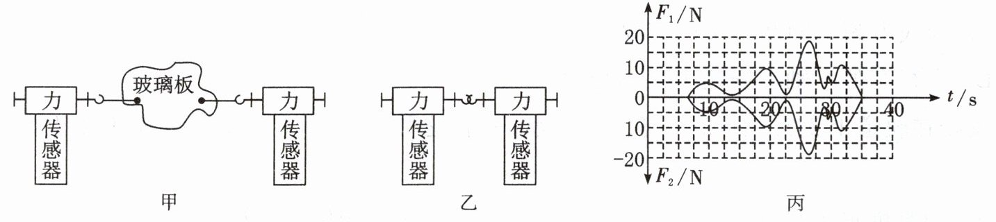 所示方案进行实验。(2)观察显示器屏幕上出现的结果如图丙所示,得出结论:两个物体间相互作用力的