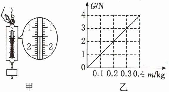 N。(4)小明根据实验数据画出重力与质量关系的图像如图乙所示,由此可知:物体所受重力跟它的质量成