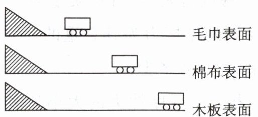 。(2) 小车在不同表面运动的距离不同的原因:受到的摩擦力大小不同。摩擦力越大,运动的距离就越