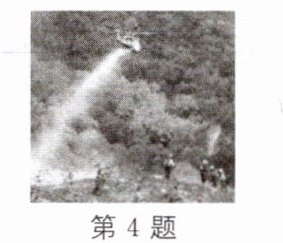 4. 如图是直升机洒水救火的场景。在该过程中,以森林中的大树为参照物,直升机是
