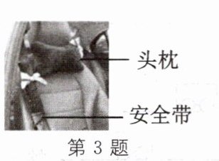 3. 如图所示是汽车内的安全带和座椅上的头枕,软软的头枕既可以起到装饰作用,又能对人起到保护作用。安全带和头枕都能减少汽车发生事故时因惯性造成的伤害,其中系安全带