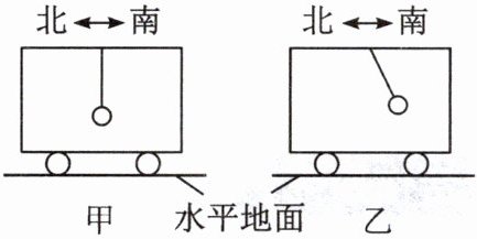 9. 金属球用细绳挂在车厢内,并相对于车静止,位置如图甲所示。下列选项中能导致球突然从如图甲位置变成如图乙位置的是 (