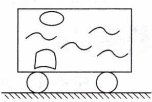 8. 如图所示,玻璃水箱中有一个气泡和一块石头,本来都处于静止状态,现在用水平向右的外力猛推水箱,则水箱加速时,气泡和石头相对于水箱 (