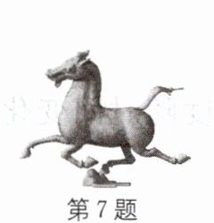 7. 如图所示是合金制成的“马踏飞燕”立在水平木制底座上。马仅用一蹄就能稳稳地踏在飞燕上,这只蹄子的中心与马的