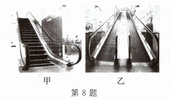 8. 细心的同学会发现商场里安装供顾客上楼的电梯主要有如图所示两种,当顾客站在类似斜面的乙电梯上匀速上升时受到的力是