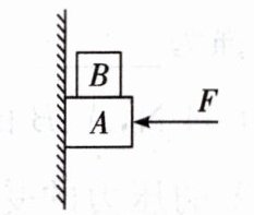 1. 如图所示,A、B两物体在水平压力F的作用下处于静止状态,已知$G_A = 8N$,$G_B = 6N$,$F = 12N$,则竖直墙面受到的压力大小为(