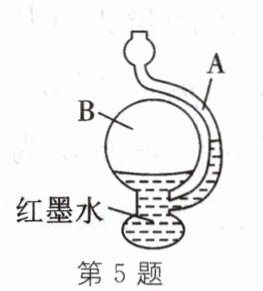 5. 如图所示的“天气预报瓶”是一个创意新品,A玻璃管与大气相通,B为密闭的玻璃球,A与B下部连通。当A管液面明显上升时,往往转为阴雨天气。下列说法正确的是(
