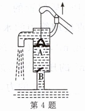 4. 如图是一种常见的活塞式抽水机,图中表示了它的工作原理,当提起活塞时,阀门