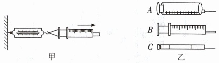 (3) 若同学们用图乙中B注射器在进行实验时,弹簧测力计被拉到5N,活塞仍没有滑动。可改用图乙中的
