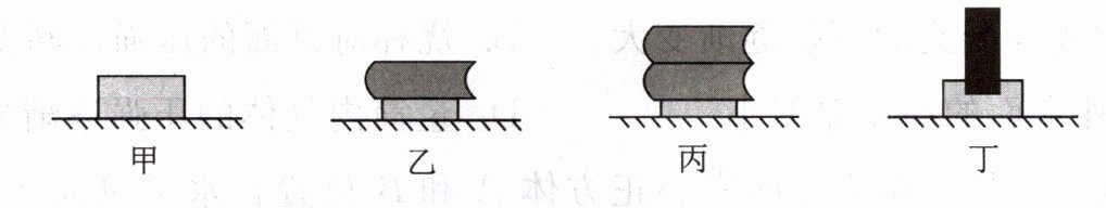 6. 为了探究压力的作用效果与受力面积和压力的关系,小刚找到了两块完全相同的海绵和三本相同的字典,设计了如图所示的实验。图甲中海绵平放在桌面上;图乙中海绵上平放一本字典;图丙中海绵上叠放两本字典;图丁中海绵上立放一本字典。下列说法错误的是(