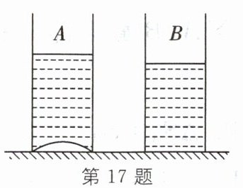 17. 如图所示,水平桌面上有两个重力不计的圆柱形容器A、B,横截面积均为$5.0×10⁻^3m^2,A$的底面向上凸起,B的底面为平面,在两容器中均加入质量为1kg的水,则B对桌面的压强为