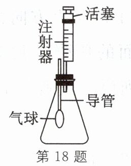 18. 将注射器、锥形瓶、气球和两端开口的玻璃导管组装成如图所示装置,注射器与锥形瓶连接处密封良好,气球通过玻璃导管与大气连通。气球内气压