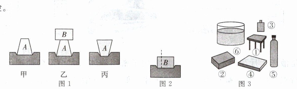 。(5)老师还提供了如图3所示的器材:①用钉子做腿的小桌;②海绵;③砝码;④木板;⑤盛有适量水的矿泉水瓶;⑥装有沙的容器,供同学们选择。同学们所选的下列四组器材中,不能达到探究目的的是
