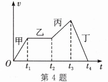 4. 如图是某汽车通过某一平直公路时记录的 $ v - t $ 图像,甲、乙、丙、丁四个过程中,汽车做匀速直线运动的是(