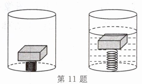 11. 小明同学认为“金属块沉在水底,不会受到水的浮力”,聪明的小旭同学做了如图所示的实验,加水前后弹簧的形变不同,说明了沉在水底的物体