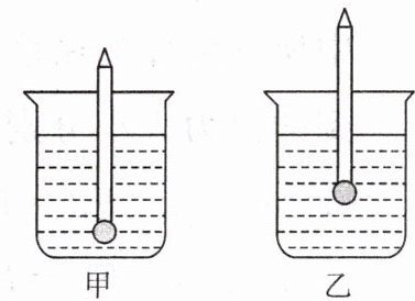 任务 为了比较两种液体密度的大小,小希同学在一支铅笔的下端粘上一块橡皮泥,将它分别置于甲、乙两种液体中,观察到静止时的情形如图所示。甲、乙相比,可知哪种液体密度比较大?