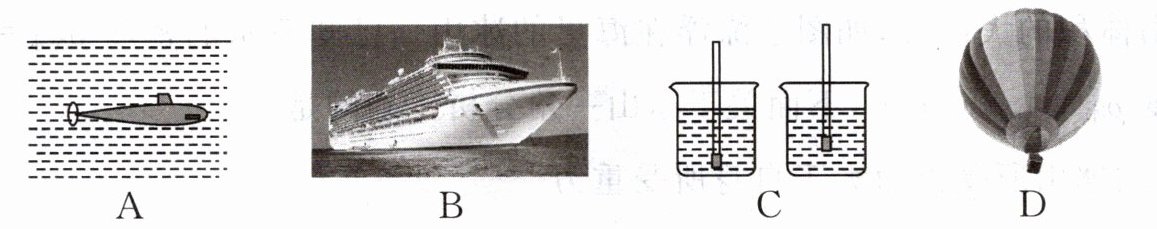 )A.图A中浸没在水中的潜水艇在下潜过程中所受浮力逐渐变小
