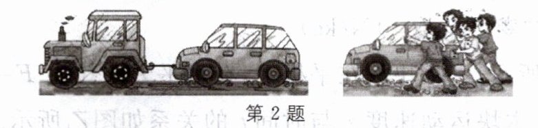 )A.拖拉机对小汽车的拉力大小等于人们对小汽车推力的合力