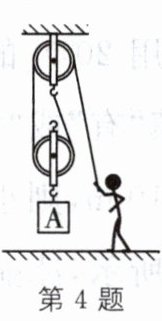 4. 如图所示,已知物体 A 和动滑轮的总重为 200 N,当物体 A 匀速升高 1 m 时,拉力所做的功为(绳子与滑轮的摩擦力,空气阻力忽略不计)(