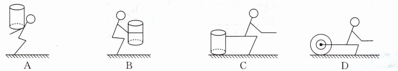 5. 如图所示,分别用肩背、手抱、平拉、滚拉的方式运送同一圆柱形货物(货物中间带转轴),在粗糙程度相同的水平地面上匀速行走相同路程,其中对货物做功最多的是(