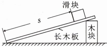 实验器材:长木板、木块、滑块、秒表、刻度尺。