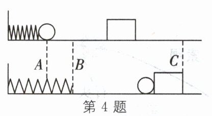 4. 小华用如图所示装置探究弹簧的“弹性势能的大小与弹性形变大小的关系”。弹簧左端固定,无形变时自由端(右端)在 $B$ 处,用力使小球向左靠近并压缩弹簧,再由静止释放,使小球撞击纸盒,观察纸盒被撞后移动的距离。以下设计方案可行的是(