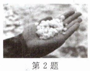 2. 如图所示的冰雹,俗称雹子,夏季或春夏之交最为常见。它是一些小如黄豆,大似栗子的冰粒,威力巨大,因为高空的冰雹具有较大的(