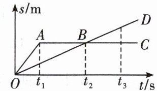 15. 在《龟兔赛跑》的故事中,乌龟和兔子同时同地从起点出发,并沿同一直线向东运动赛跑,兔子远远超过乌龟时,便骄傲地睡起了大觉,当它醒来后,发现乌龟已悄悄地爬到了终点。从龟兔赛跑开始到兔子睡醒的s-t图像如图所示,图中线OBD、OAC分别是它们的运动图像,下列说法正确的是(