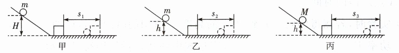 (2)图乙和图丙实验中,让不同质量的钢球从斜面同一高度由静止滚下,是为了使两球达到水平面时具有相同的