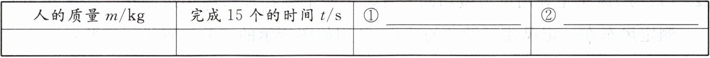 |人的质量 $ m $/kg|完成 15 个的时间 $ t $/s|①