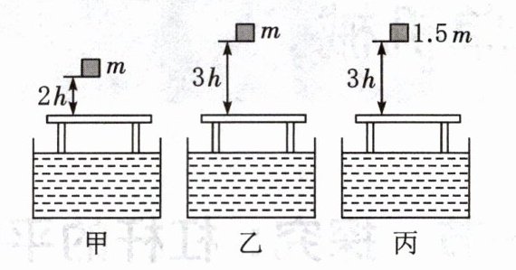 为了验证上述猜想,小刚利用小桌、沙子、透明的箱子、质量不同的重物进行实验。如图所示,把小桌放在平整的沙面上,让重物从高处落下,撞击桌面的中心部位,桌腿陷入沙子。如图为实验过程中的有关情景。
