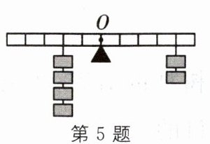 5. 如图所示,有一根轻质杠杆,在中点支起,两边挂上砝码后,恰能在水平位置平衡。在下列几种情况下,还能使杠杆保持平衡的是(