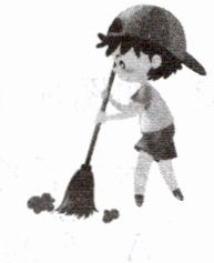 4. 如图所示是同学用扫把扫地的情景,他的左手握住扫把柄的上端,右手向前推扫柄,此时扫把(