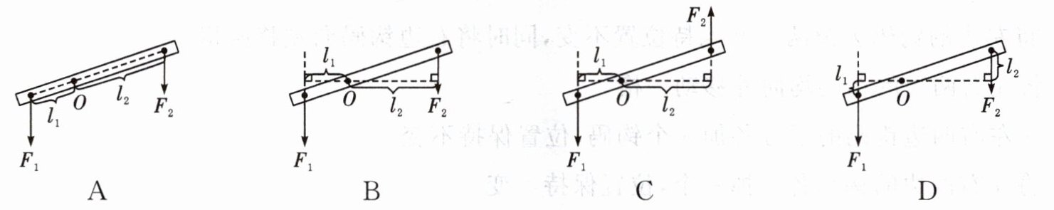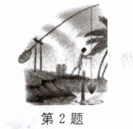2. 桔槔是中国古代社会的一种主要灌溉机械。如图所示,在水边架一个杠杆,前端用绳系提水工具,后端坠重物,即可一起一落地汲水。下列关于该桔槔使用时的杠杆五要素示意图正确的是(