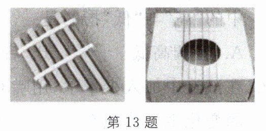 13. 如图所示,同学们用吸管、纸盒、橡皮筋等物品自制的“排箫”“古筝”等乐器。吹奏“排箫”时空气柱