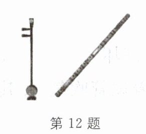 12. 豫剧是中国五大戏曲剧种之一。如图是为豫剧伴奏的常用乐器——板胡和竹笛。拉板胡时,手指按压琴弦的不同位置是为了改变声音的