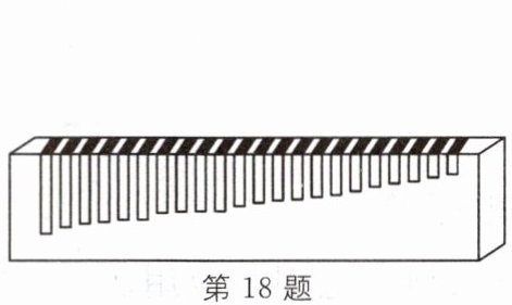 18. 小夏在研究口琴的发声原理时,拆掉了口琴外壳,发现在气孔边分布着长短、厚薄都不同的一排铜片,如图所示。吹口琴时,在气流的冲击下,铜片振动,发出声音,对不同气孔吹气,改变了声音的