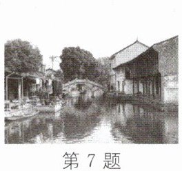 7. 名句“枯藤老树昏鸦,小桥流水人家”出自元代著名散曲家马致远的《天净沙·秋思》,诗句给人冷落暗淡的气氛,又显示出一种清新幽静的场景。如图所示,小桥流水人家使人感到幽雅闲适,从物理的角度分析,若以流水为参照物,则小桥是